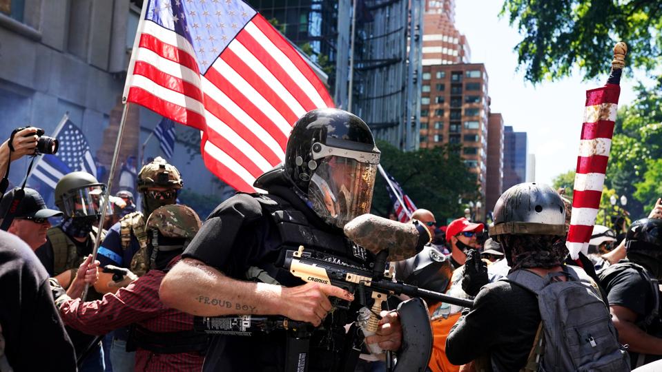 Right Wing Groups Rally In Portland Wearing Body Armor Helmets